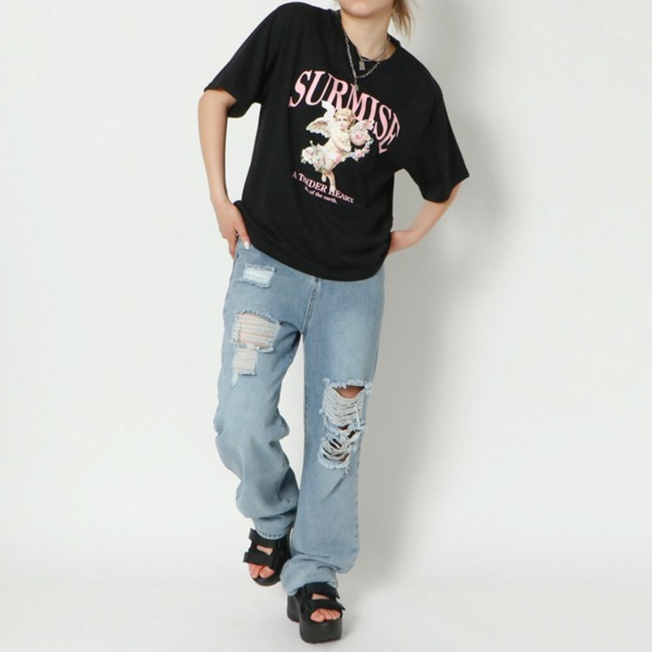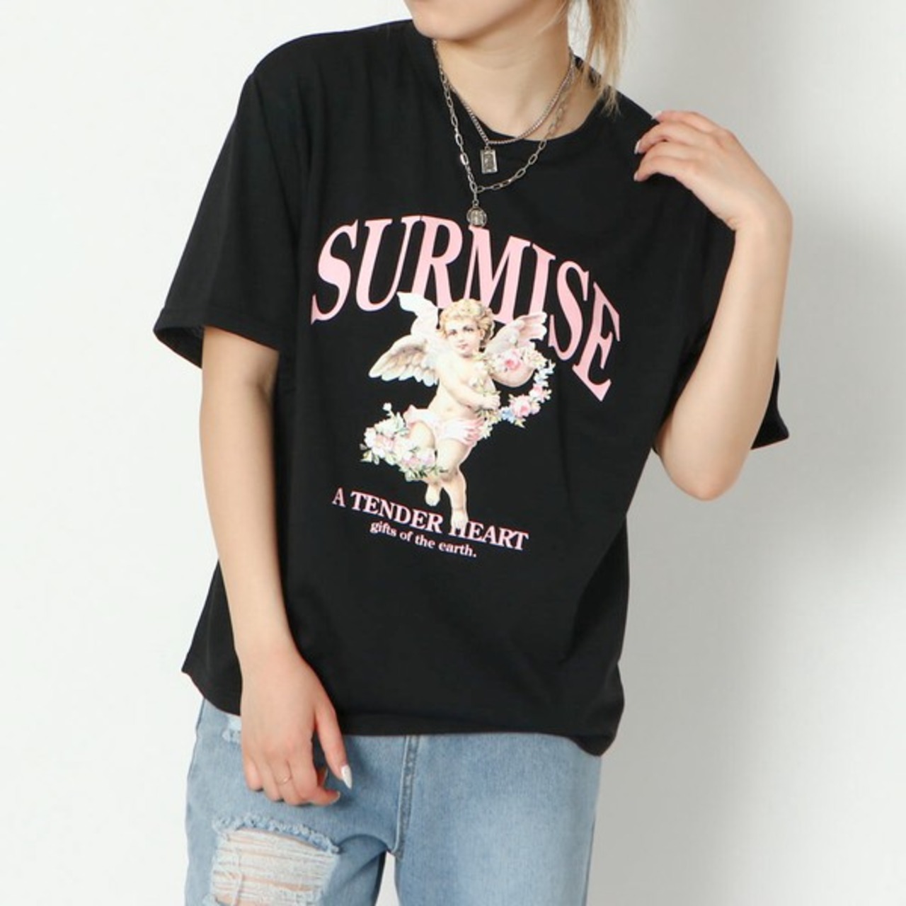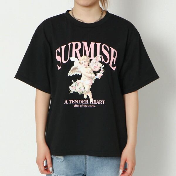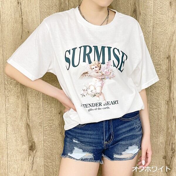 キャッチーでかわいいお洒落なエンジェルプリントTシャツが登場★目を引く天使とフラワープリントがヴィンテージライクでキュート♪素材は、柔らかく肌触り良く着心地抜群◎パンツにもスカートにも合わせやすく、普段使いはもちろん、フェスやイベントなどのおしゃれな場面でも活躍するアイテムです☆