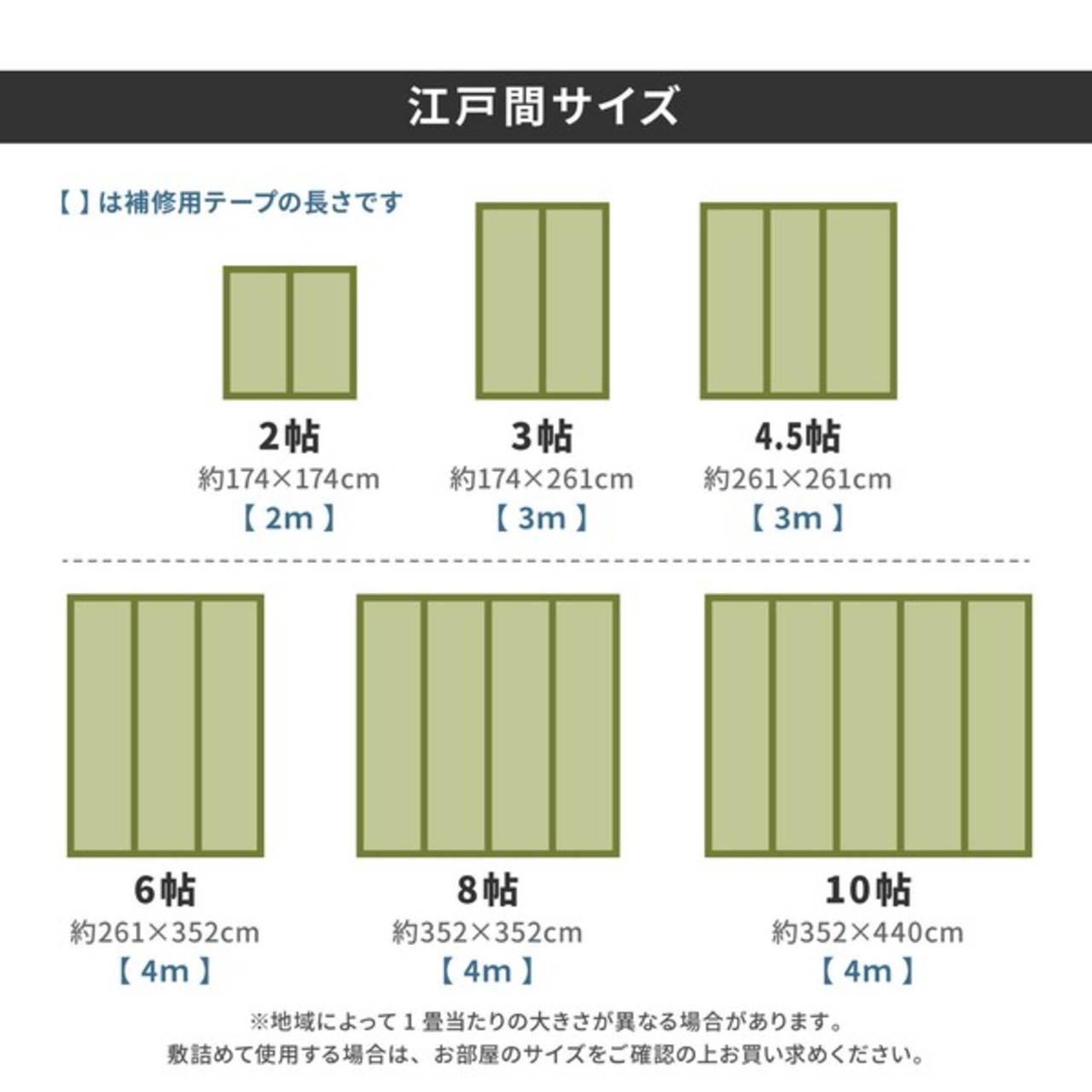 ※1 縁補修テープは、江戸間・本間・団地間とも下記の長さをお付けする予定です