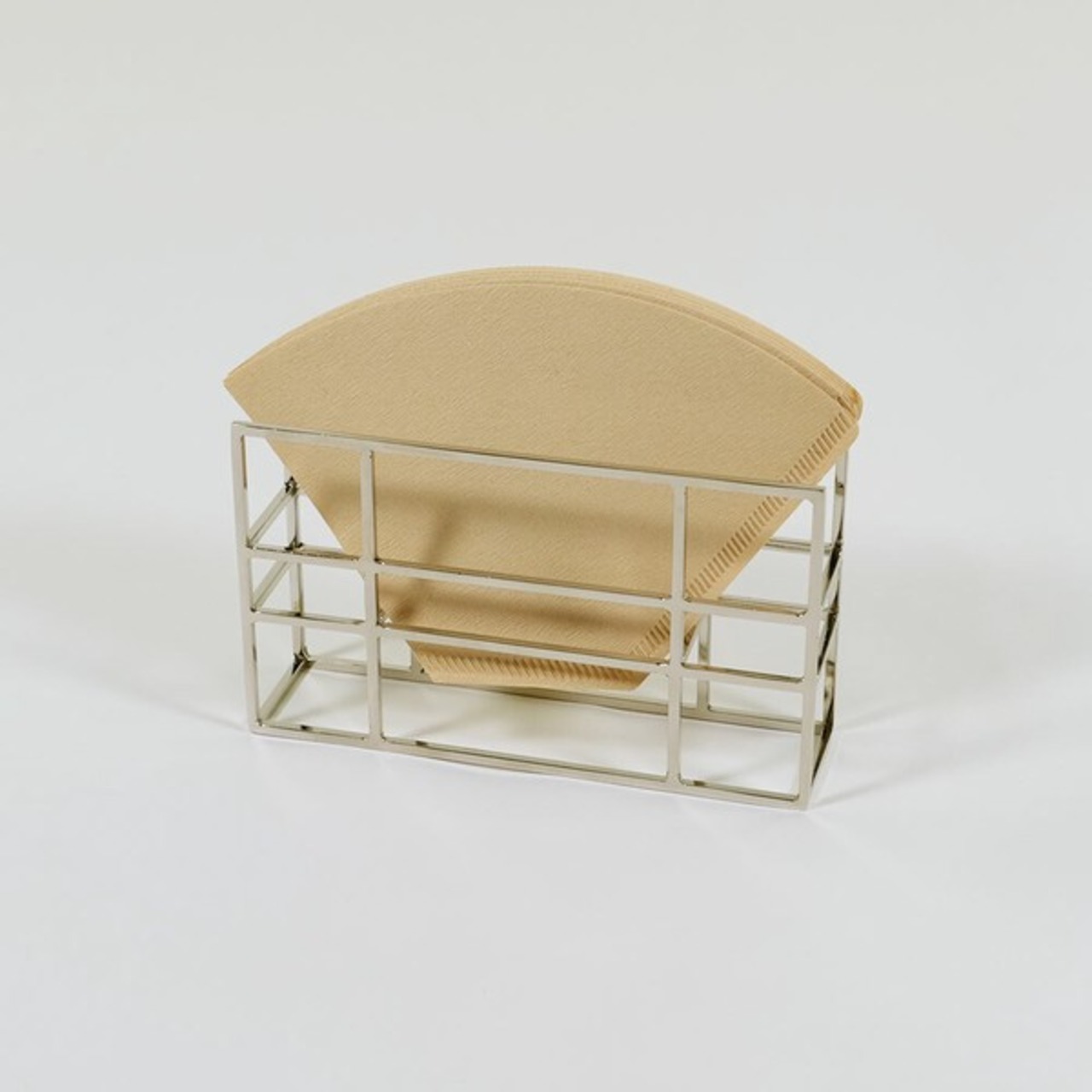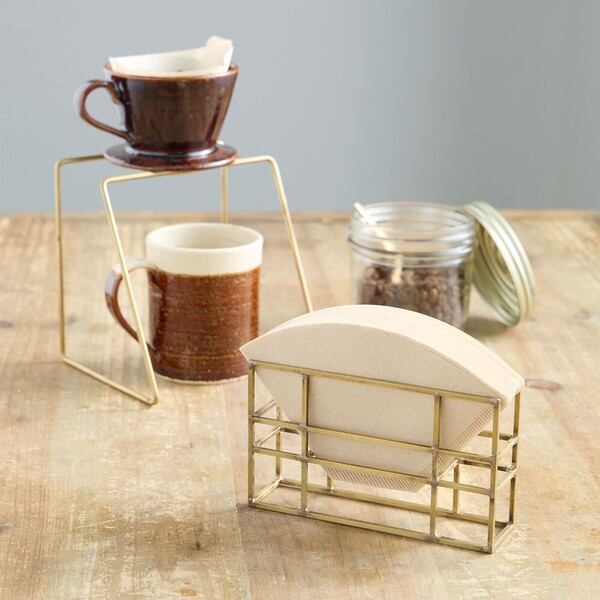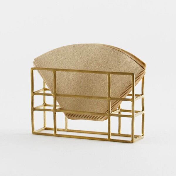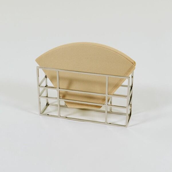 高級感あふれるゴールドとシルバーのカラーとエレガントでモダンなデザインが特徴のコーヒーフィルターケースです