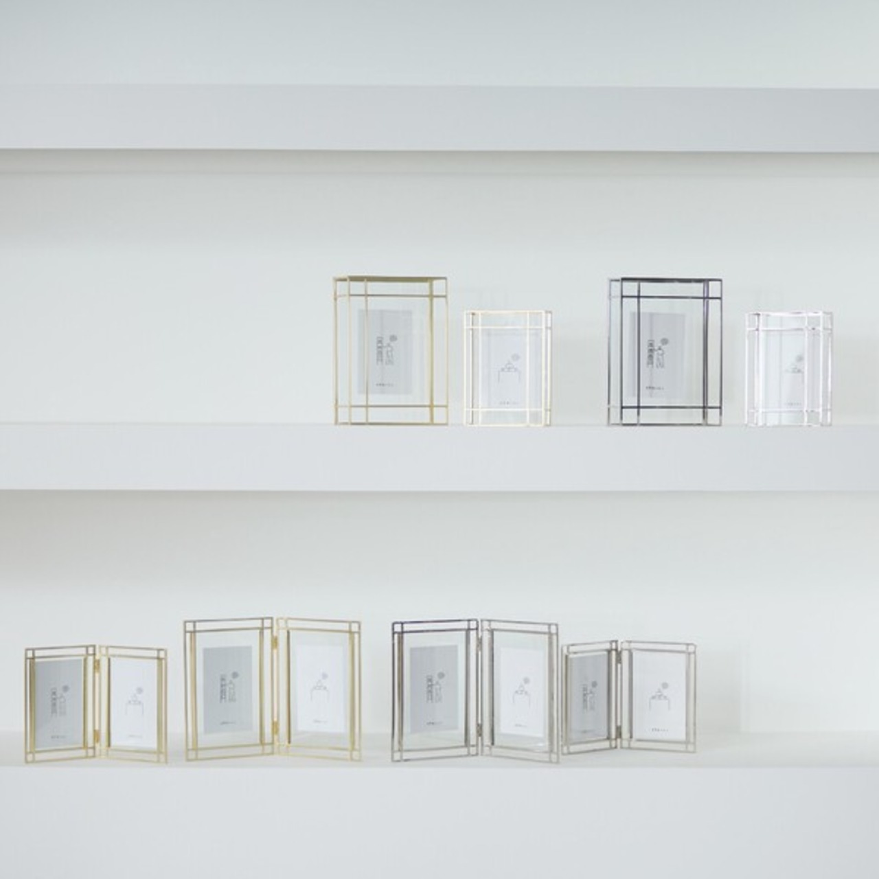 アウトレット アウトラインのダブルフォトフレーム(2サイズ・2色)/鉄 ガラス 写真立て / 家具・インテリア インテリア雑貨