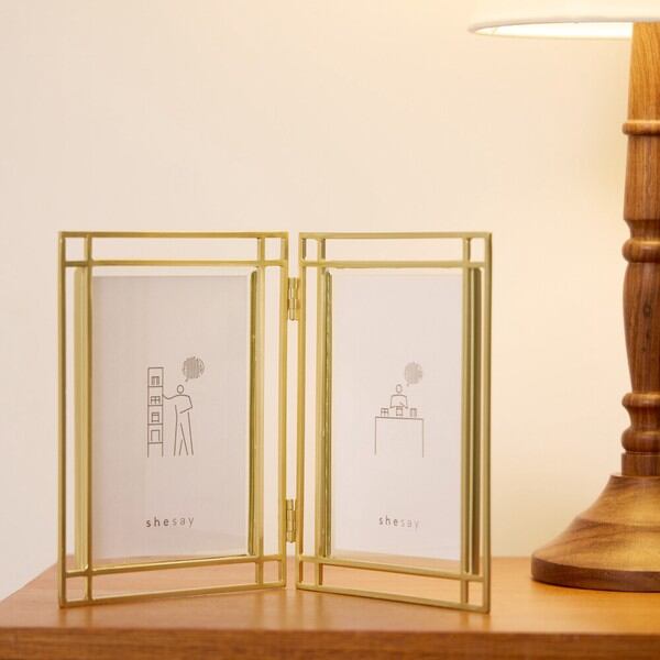 ★ホテルライクなアウトラインのダブルフォトフレーム S GL(ゴールド) 1点 等