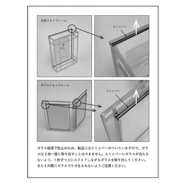 ガラス板落下防止のため、製品にはストッパーがついていますので、ガラスは2枚一度に取り出すことはできません