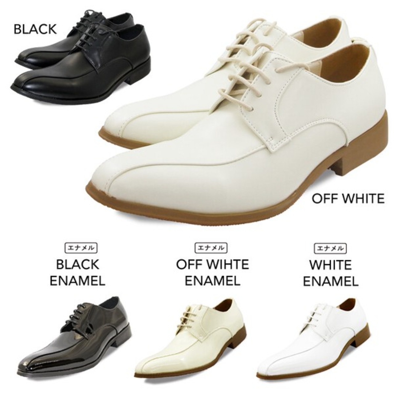・エナメル素材やホワイトカラーは結婚式の新郎・コスプレ素材・夜のお仕事ホストの方にもおすすめです