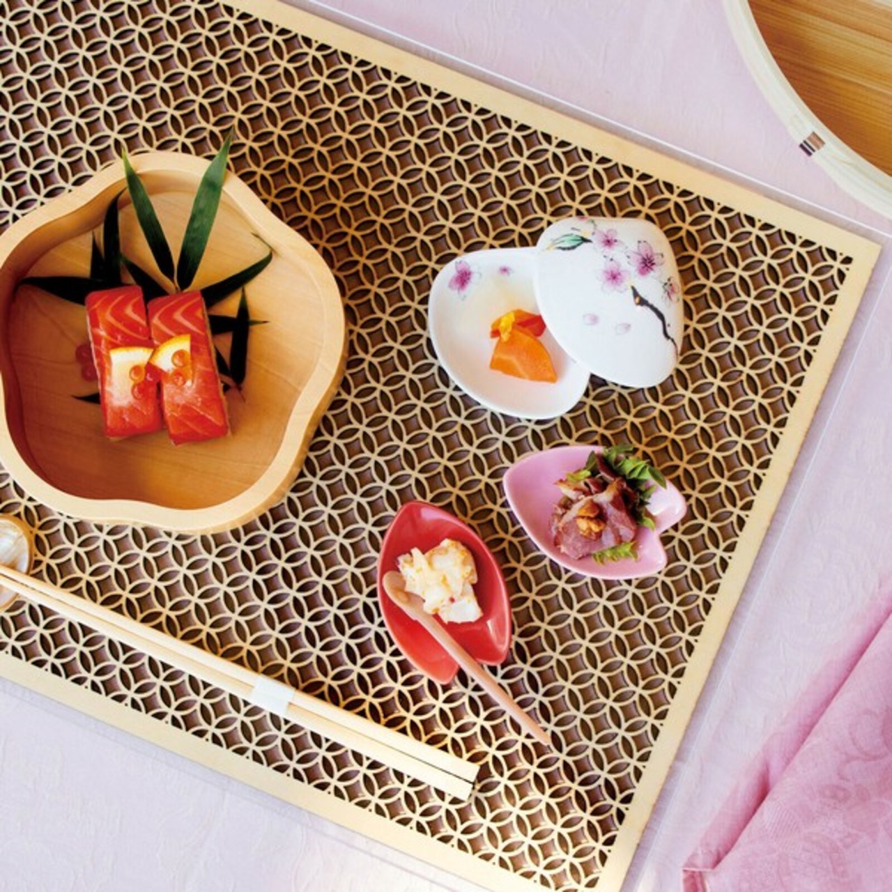 ひのき細密膳 長角 青海波/麻の葉/七宝 専用アクリル板 大/小 / 生活雑貨 食器・キッチン