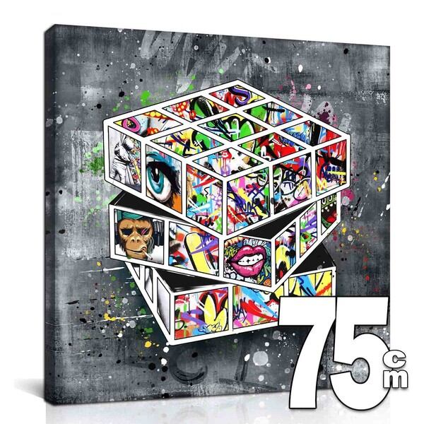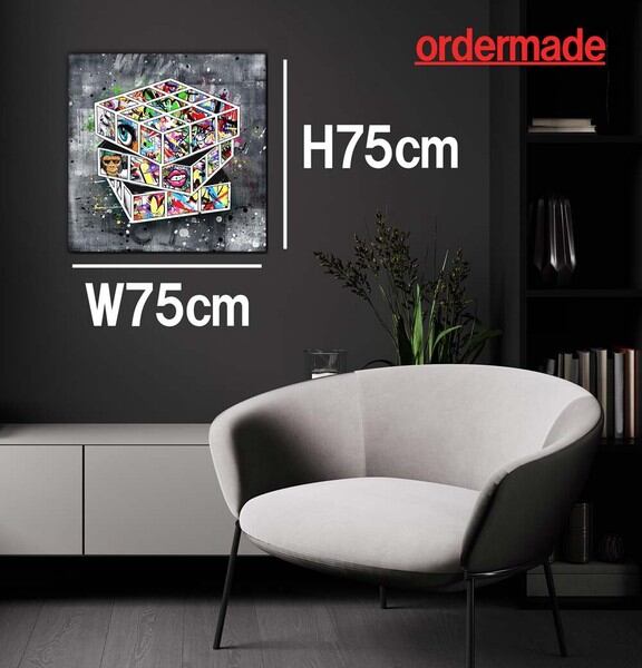 受注制作品 ARTJOY CUBE 75cm 白 アートパネル ストリートアート 絵 特大 キューブ マジックキューブ / 家具・インテリア インテリアアート アートフレーム