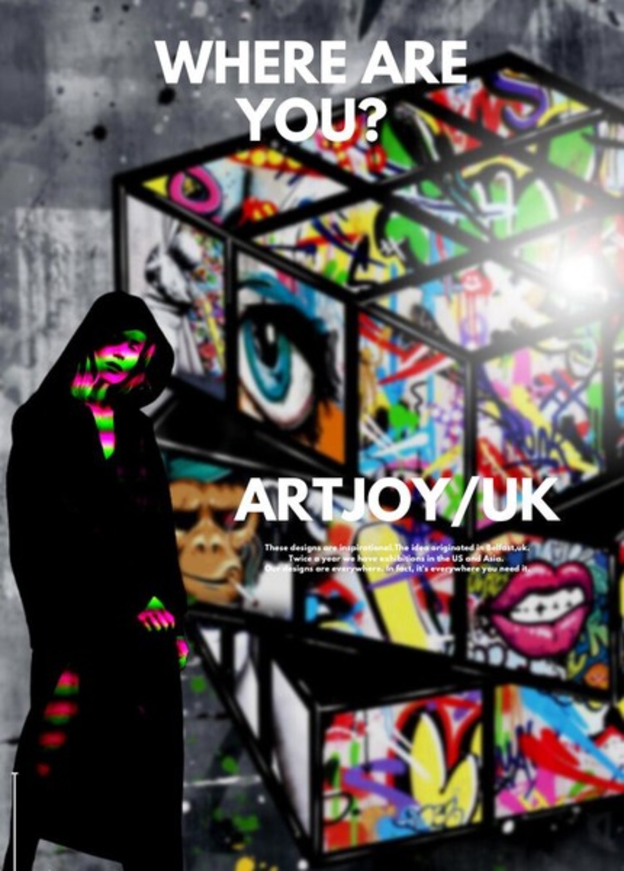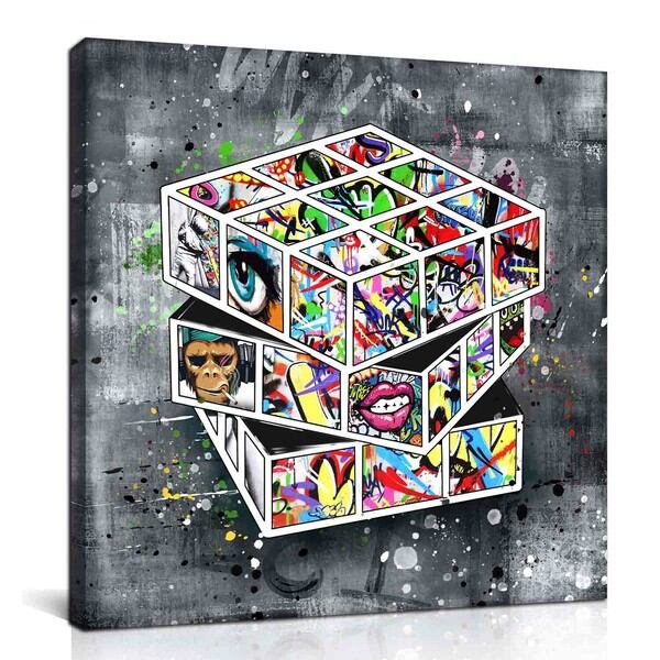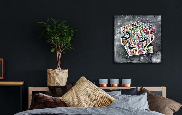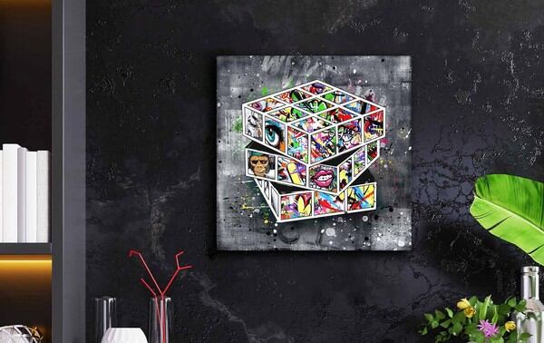 ARTJOY MAGIC CUBE ストリートアート 壁掛け 絵画 インテリア おしゃれ 玄関 リビング グラフィック アート 人気 ブランド 北欧 モダン アートボード グレー 赤 黄色 ピンク サル 猿 キューブ 絵 ルービックキューブの絵