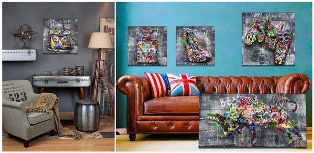 元気の出るカラフルな絵・お部屋がパッと明るくなる絵・可愛いイラスト風の絵・ビタミンカラーメインの配色 「アートジョイUK」シリーズは、バンクシーに代表される「グラフィティーアート」と呼ばれる画風のカテゴリ