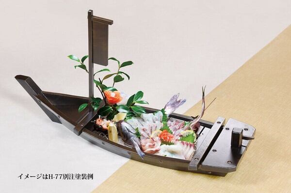 宴会の席などでおなじみの 御造りなどの料理を盛付ける、本格的な川舟です