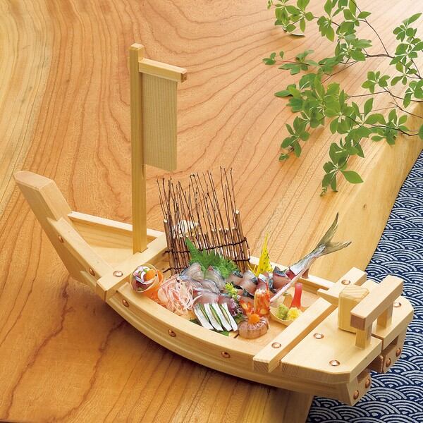 宴会の席などでおなじみの 御造りなどの料理を盛付ける、本格的な料理舟です