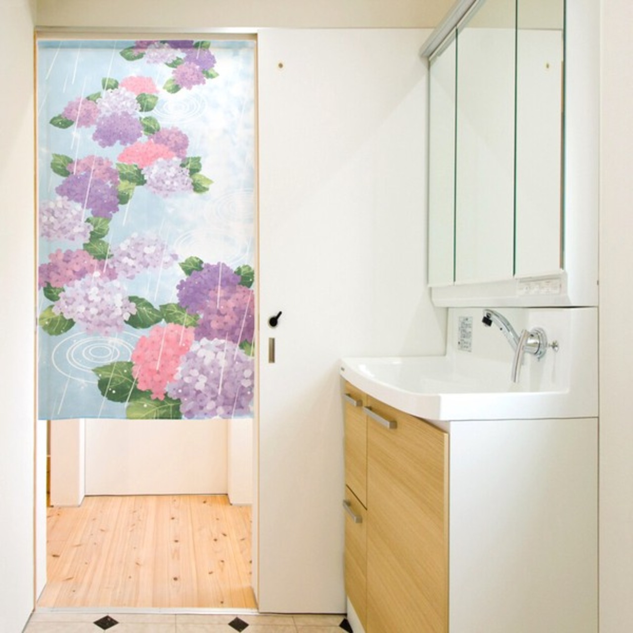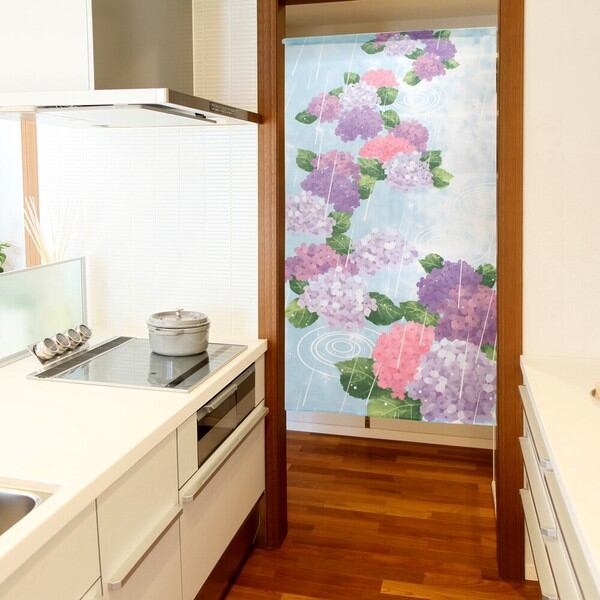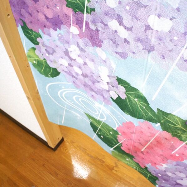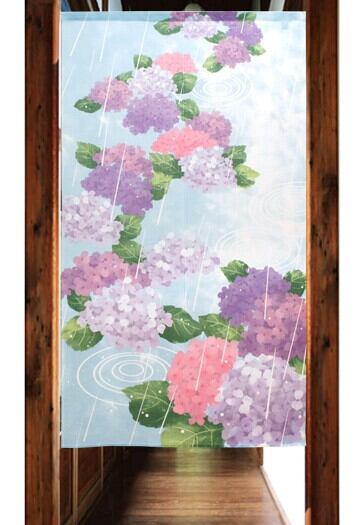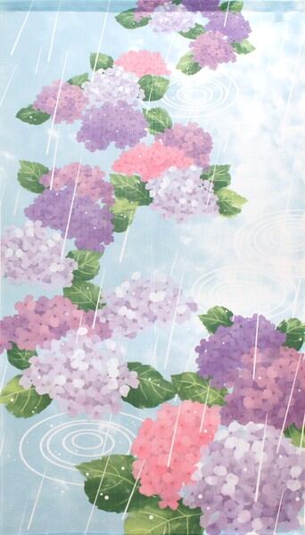 のれん 目隠し 85X150cm 山中奈緒子「紫陽花と雨」 日本製 和風 / 家具・インテリア ファブリック・敷物