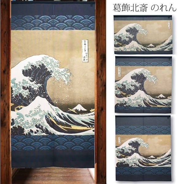 のれん 受注生産 目隠し 「葛飾北斎_神奈川沖浪裏」 日本製 白波 和柄 和風 暖簾 / 家具・インテリア ファブリック・敷物