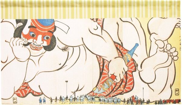 ☆のれん「歌川国芳_朝比奈小人嶋遊 03」 約幅 85cm X 丈 150cm 1点