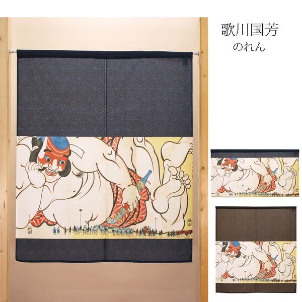 のれん 受注生産 目隠し 「歌川国芳_朝比奈小人嶋遊」 日本製 和風 / 家具・インテリア ファブリック・敷物