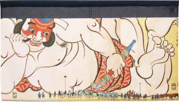 ★のれん「歌川国芳_朝比奈小人嶋遊 08」 約幅 85cm X 丈 90cm 1点 等