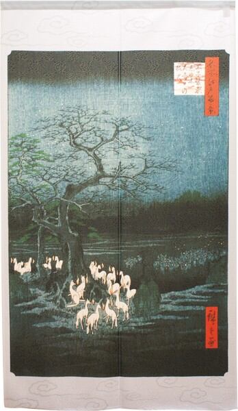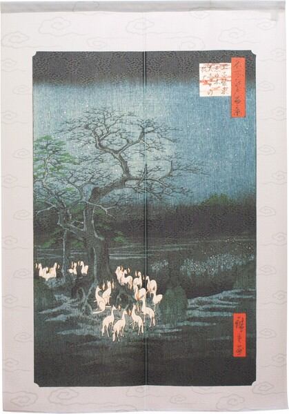 ☆のれん「歌川広重_王子装束ゑの木大晦日の狐火」 約幅 85cm X 丈 150cm 1点