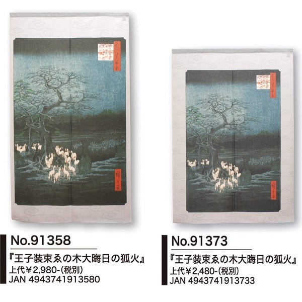 ★のれん「歌川広重_王子装束ゑの木大晦日の狐火」 約幅 85cm X 丈 120cm 1点