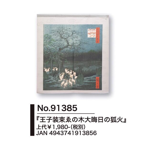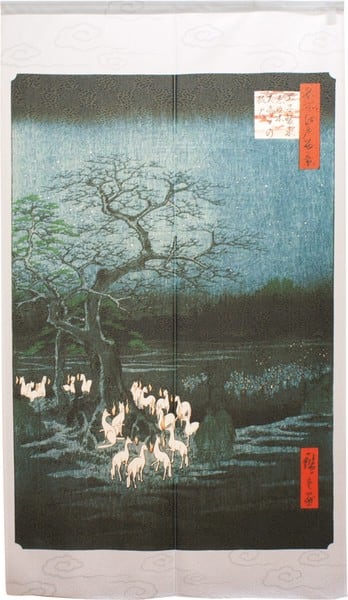☆のれん「歌川広重_王子装束ゑの木大晦日の狐火」 約幅 85cm X 丈 120cm 1点