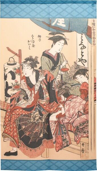 ★のれん「喜多川歌麿_女藝者部・獅子」 約幅 85cm × 丈 120cm 1点