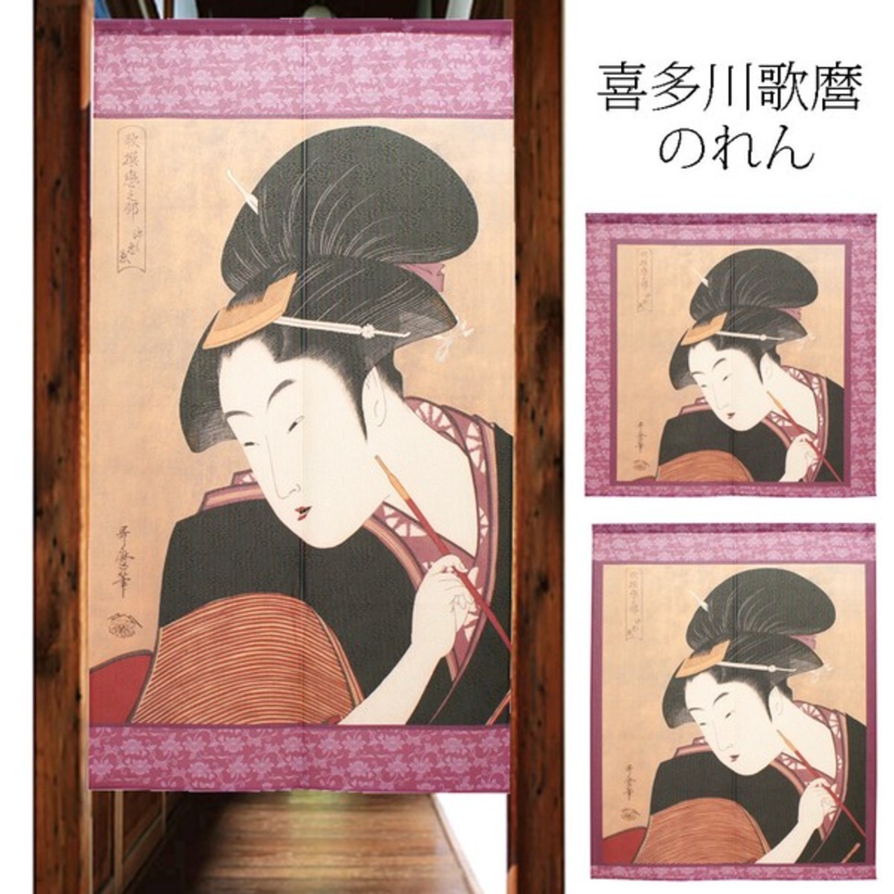 ★のれん「喜多川歌麿_深く忍恋」 約幅 85cm × 丈 120cm 1点