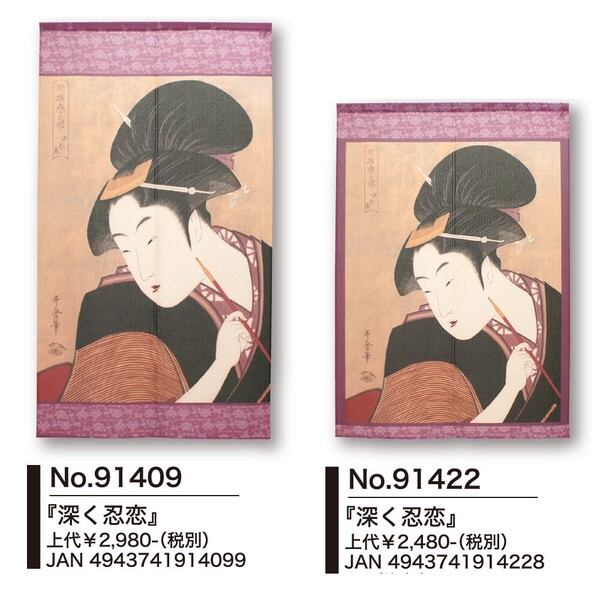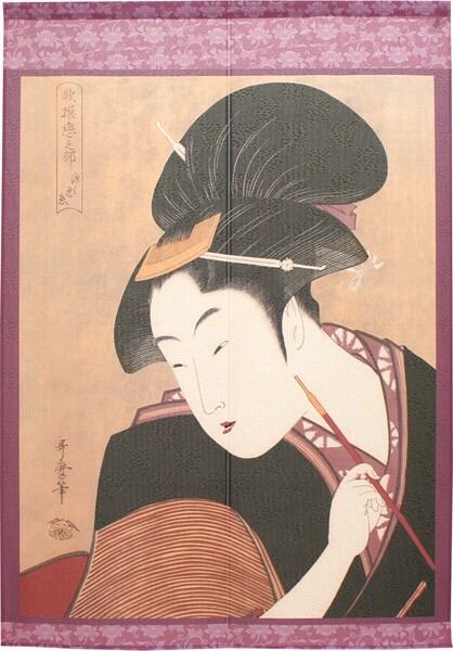 ☆のれん「喜多川歌麿_深く忍恋」 約幅 85cm × 丈 150cm 1点