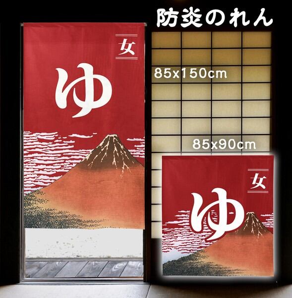 のれん 受注生産 目隠し 「防炎ゆ(大) 女」85x90/150cm 日本製 和風 店舗 施設 向け / 家具・インテリア ファブリック・敷物