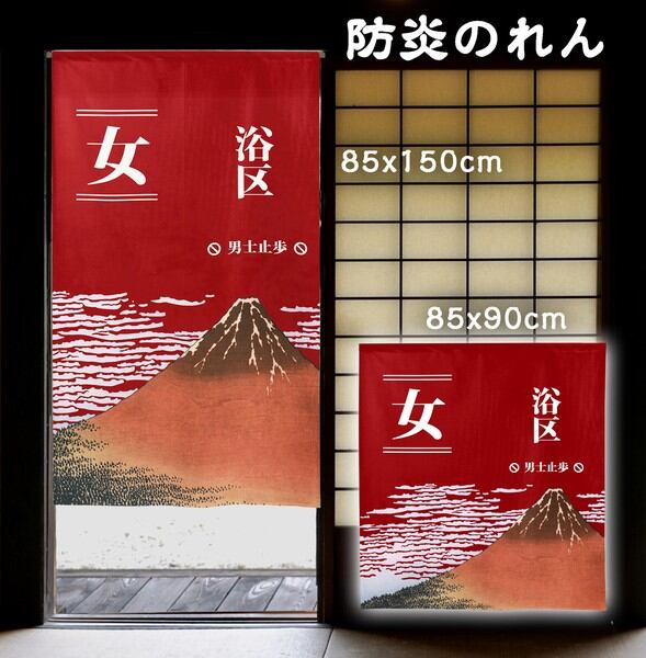 のれん 受注生産 目隠し 「防炎ゆ 女(中国語)」85x90/150cm 日本製 和風 店舗 施設 向け / 家具・インテリア ファブリック・敷物