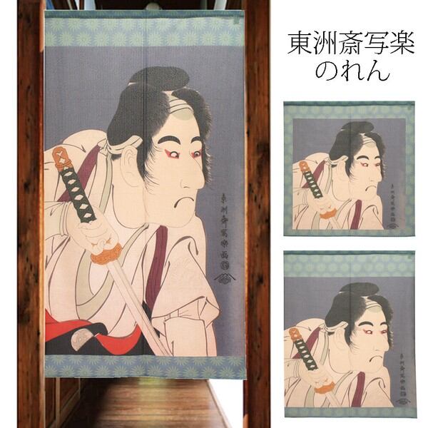のれん 受注生産 目隠し 「東洲斎写楽_二世坂東三津五郎の石井源蔵」 日本製 和風 / 家具・インテリア ファブリック・敷物
