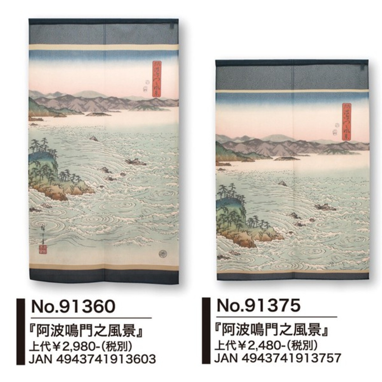 ☆のれん「歌川広重_阿波鳴門之風景」 約幅 85cm X 丈 150cm 1点