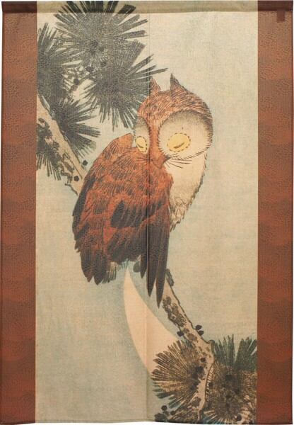 ☆のれん「歌川広重_三日月に松上の木菟」 約幅 85cm X 丈 90cm 1点