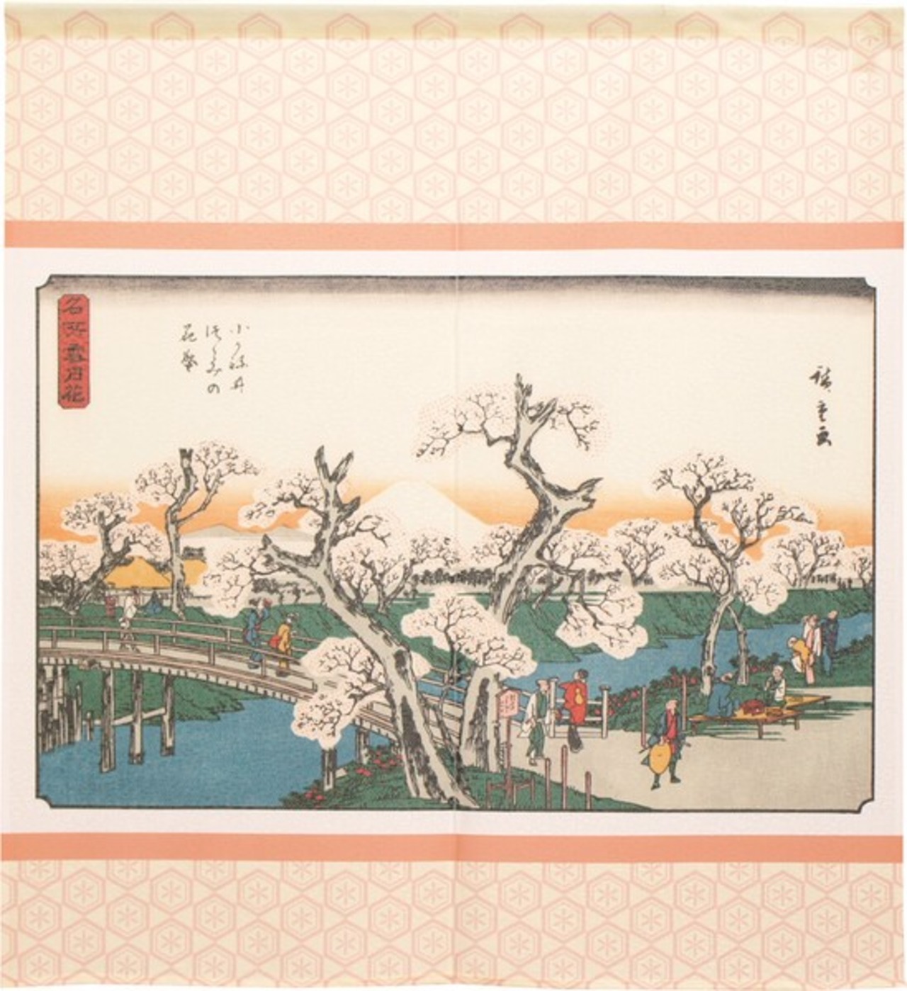 ☆のれん「歌川広重_小かね井つつみの花盛」 約幅 85cm X 丈 90cm 1点
