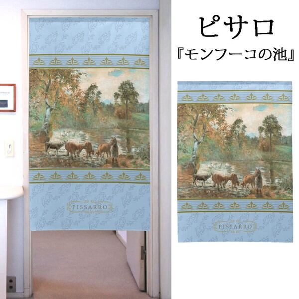 のれん 受注生産 目隠し 「ピサロ_モンフーコーの池」 日本製 洋風 絵画 / 家具・インテリア ファブリック・敷物