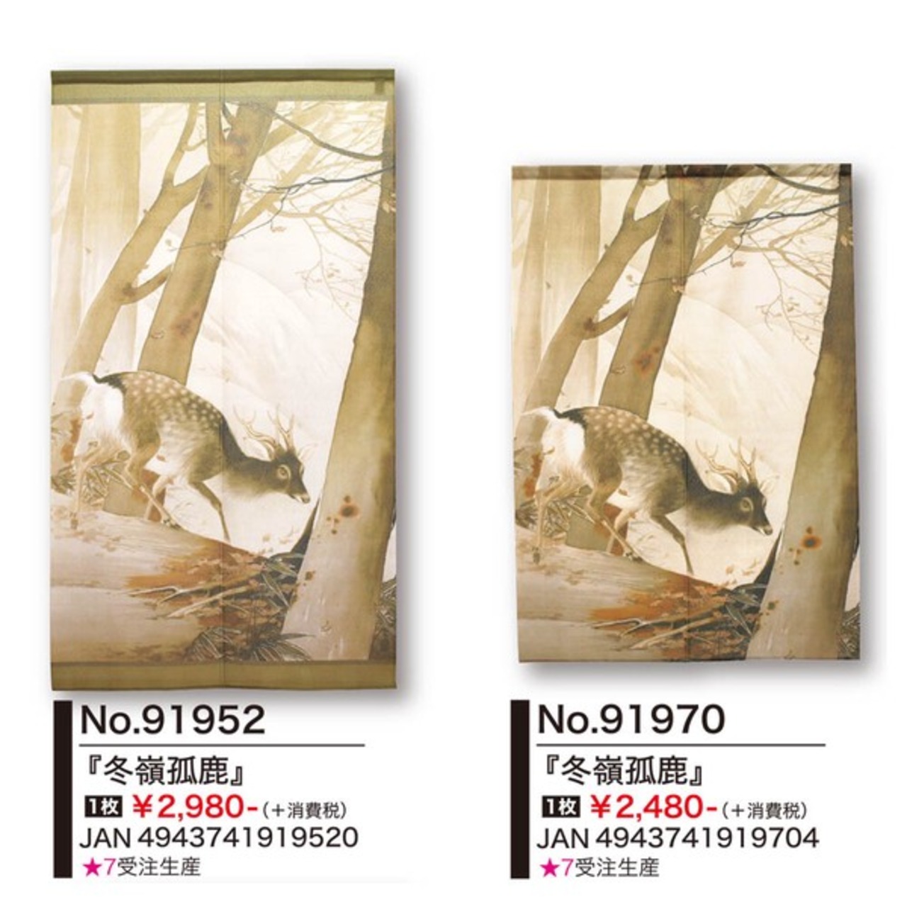 ★のれん「川合玉堂_冬嶺孤鹿」 約幅 85cm × 丈 150cm 1点