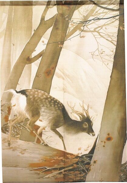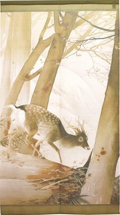 ☆のれん「川合玉堂_冬嶺孤鹿」 約幅 85cm × 丈 120cm 1点