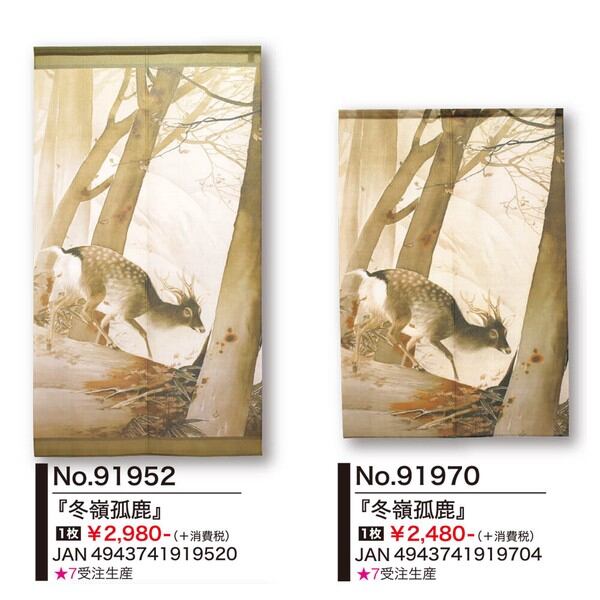 ★のれん「川合玉堂_冬嶺孤鹿」 約幅 85cm × 丈 120cm 1点
