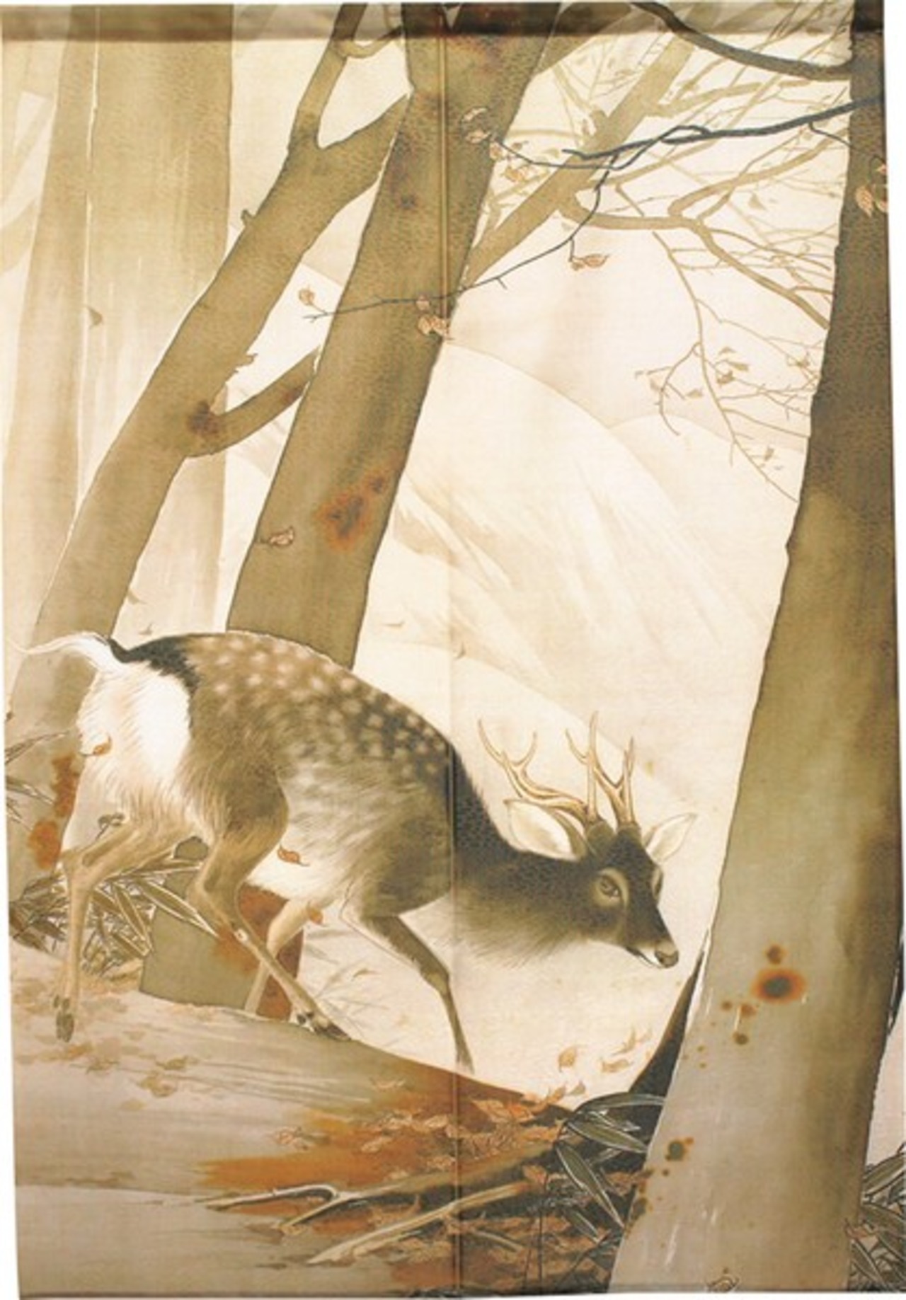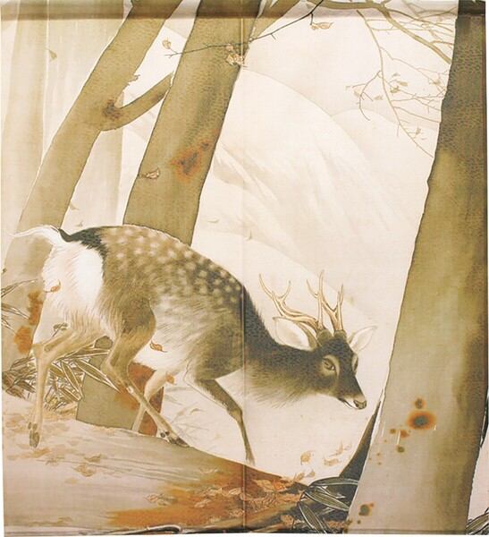 ☆のれん「川合玉堂_冬嶺孤鹿」 約幅 85cm × 丈 150cm 1点