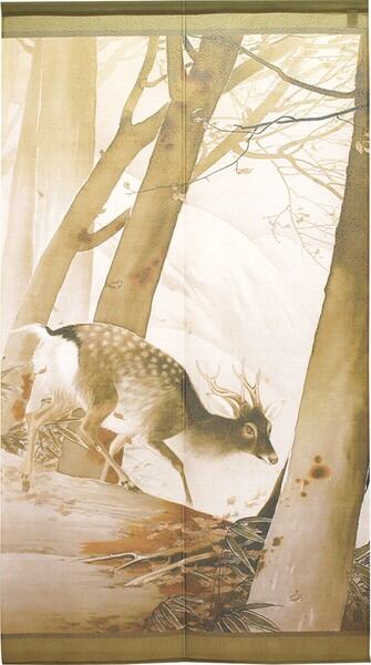 のれん 受注生産 目隠し 「川合玉堂_冬嶺孤鹿」 日本製 和風 / 家具・インテリア ファブリック・敷物