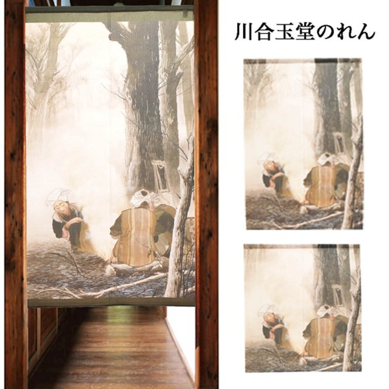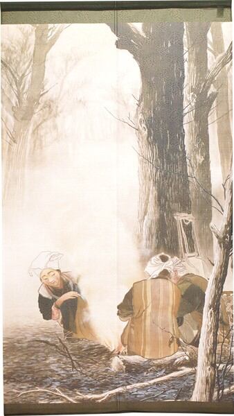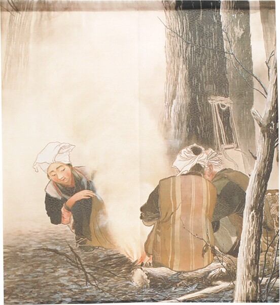 ☆のれん「川合玉堂_焚き火」 約幅 85cm × 丈 150cm 1点