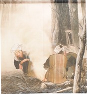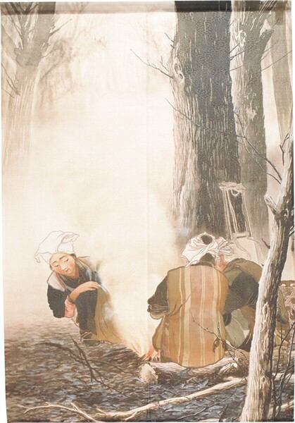 ★のれん「川合玉堂_焚き火」 約幅 85cm × 丈 120cm 1点