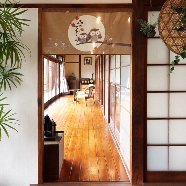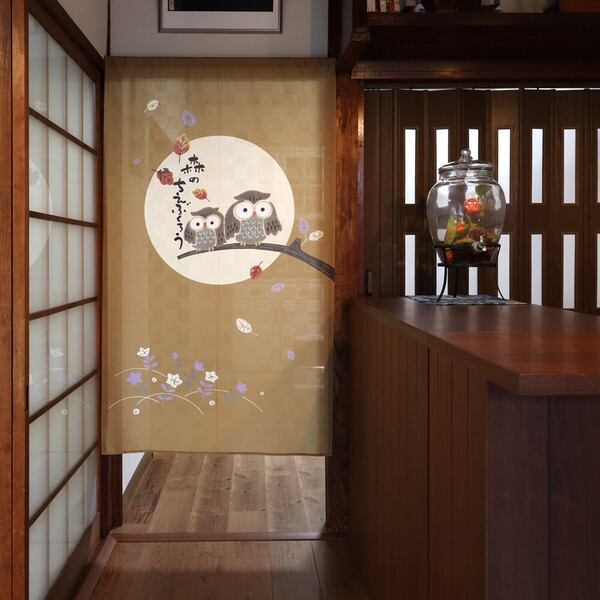 のれん 目隠し「森の知恵ふくろう ブラウン」 日本製 和風 / 家具・インテリア ファブリック・敷物