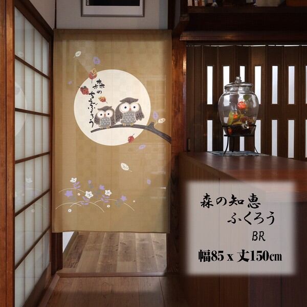 ☆のれん 「森の知恵ふくろうBR」 約幅 85cm × 丈 150cm 1点