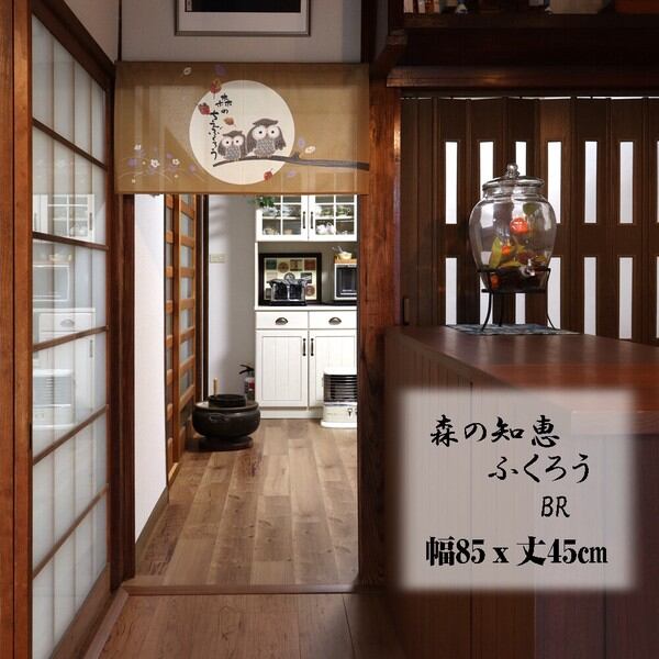 ☆のれん 「森の知恵ふくろうBR」 約幅 85cm × 丈 45cm 1点