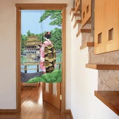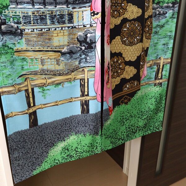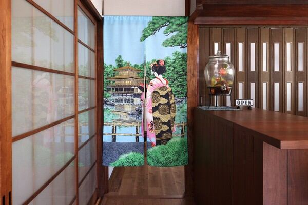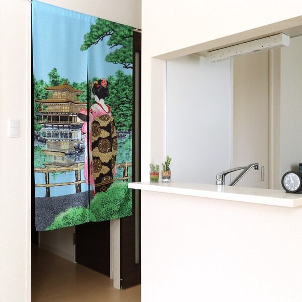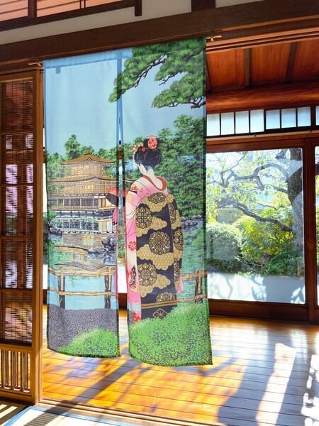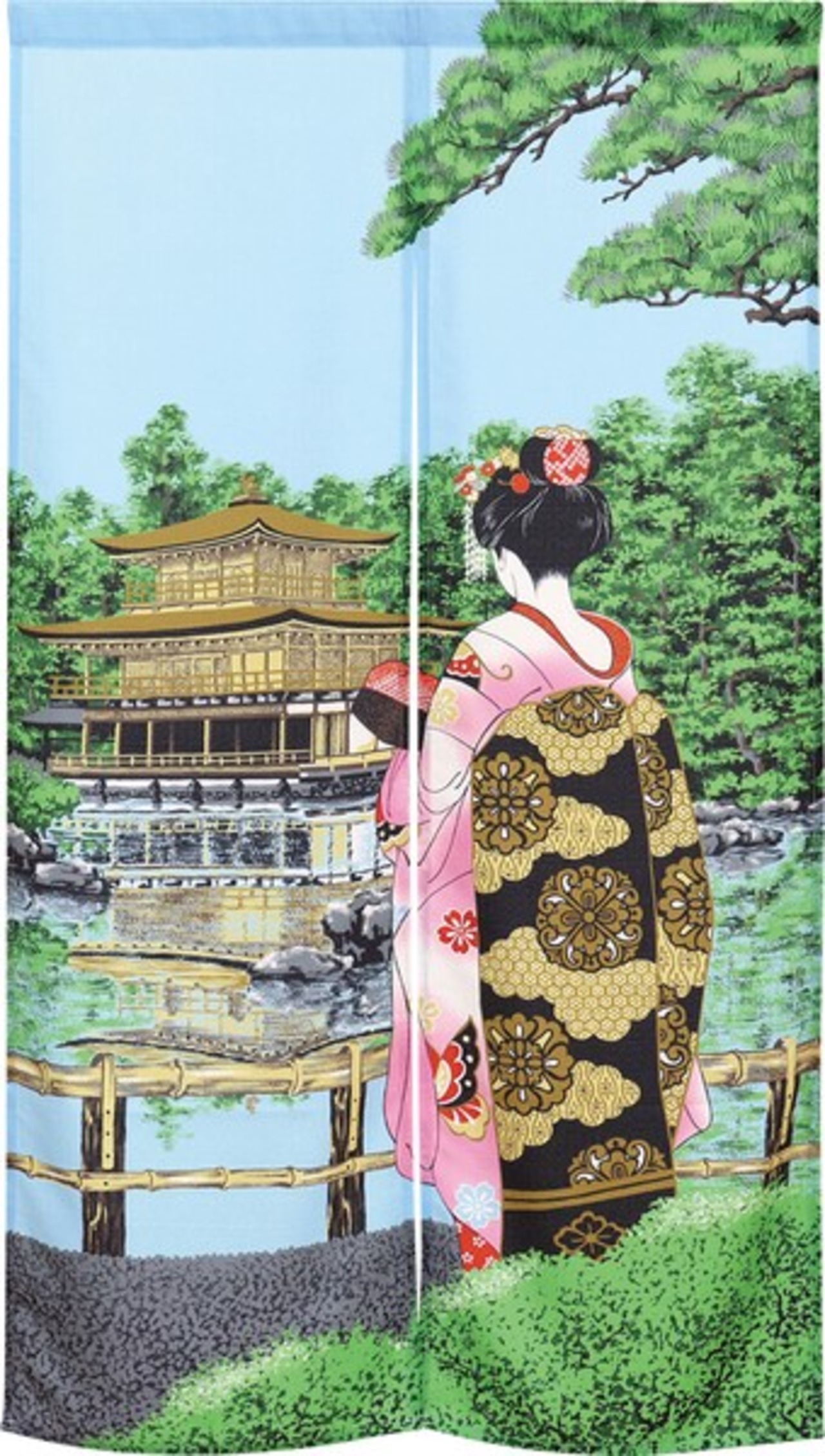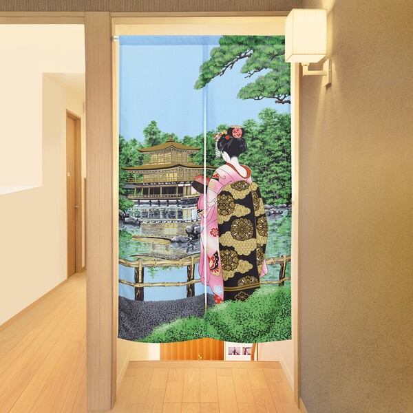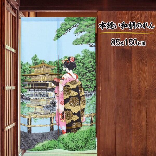 85X150cm 本縫いのれん 目隠し「N 舞妓金閣寺」和柄 和風 暖簾 / 家具・インテリア ファブリック・敷物
