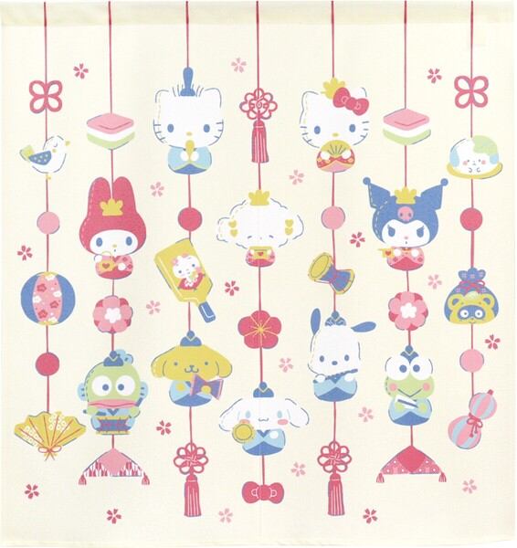 のれん 受注生産 目隠し 「サンリオキャラクターズ 吊るし雛」85×丈90cm 日本製 / 家具・インテリア ファブリック・敷物