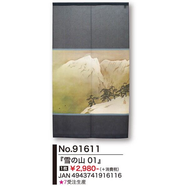 ☆のれん「横山大観_雪の山 01」 約幅 85cm × 丈 150cm 1点