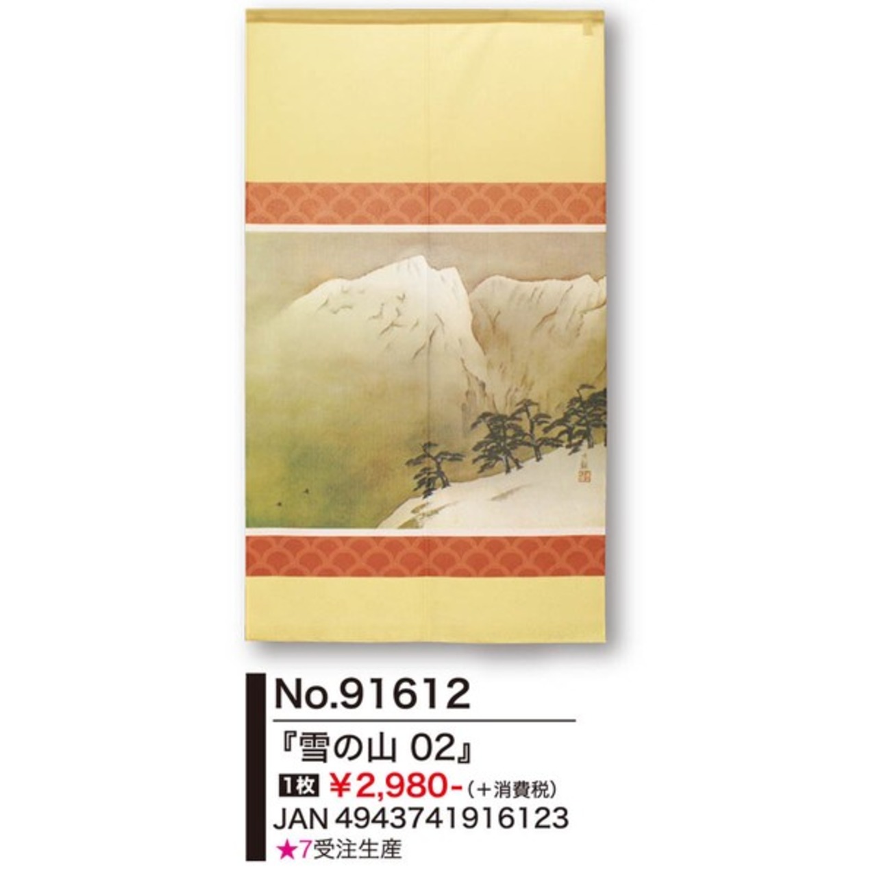 ★のれん「横山大観_雪の山 02」 約幅 85cm × 丈 150cm 1点