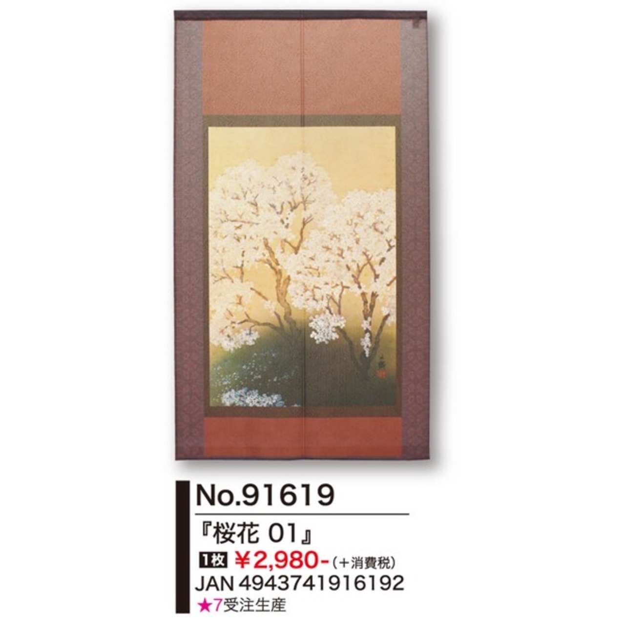 ☆のれん「横山大観_桜花 01」 約幅 85cm × 丈 150cm 1点