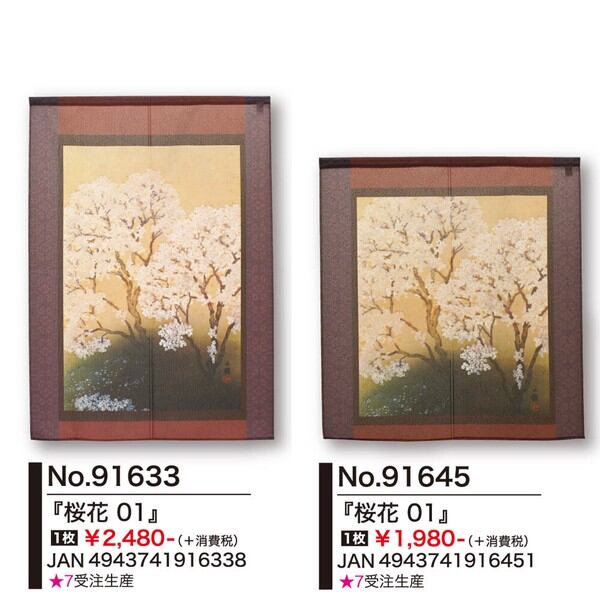 ☆のれん「横山大観_桜花 01」 約幅 85cm × 丈 120cm 1点