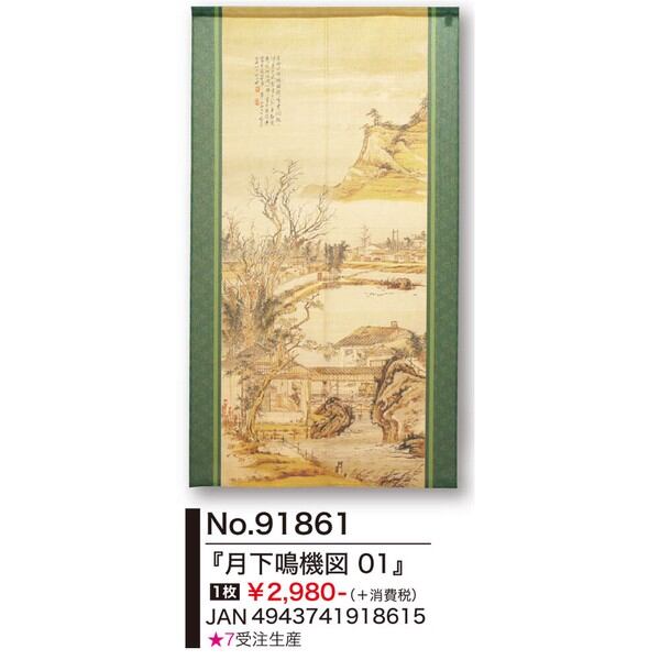 ★のれん「渡辺崋山_月下鳴機図 01」 約幅 85cm × 丈 150cm 1点