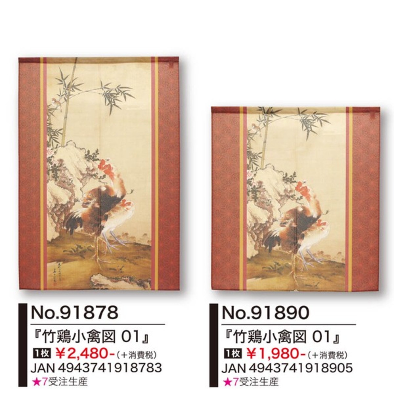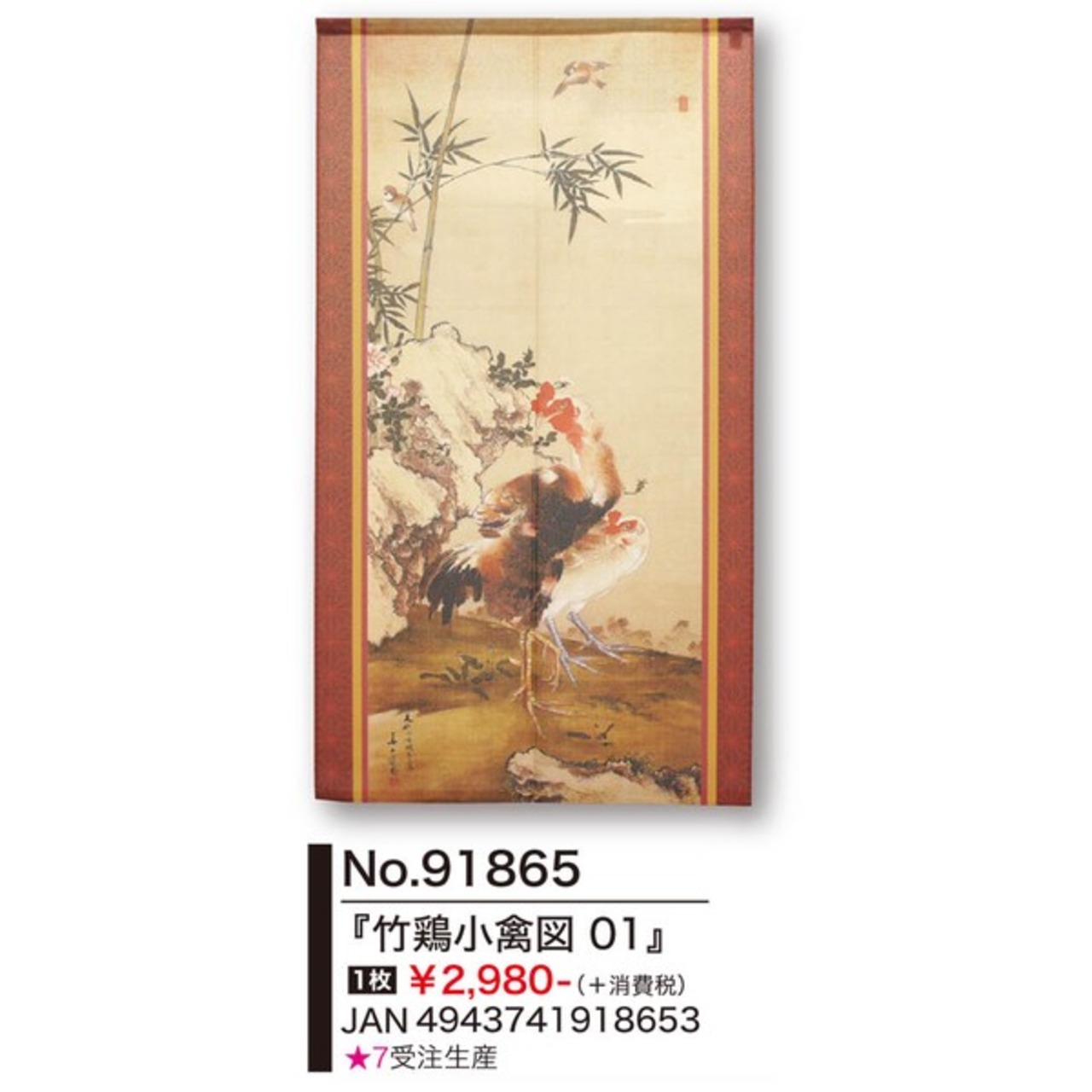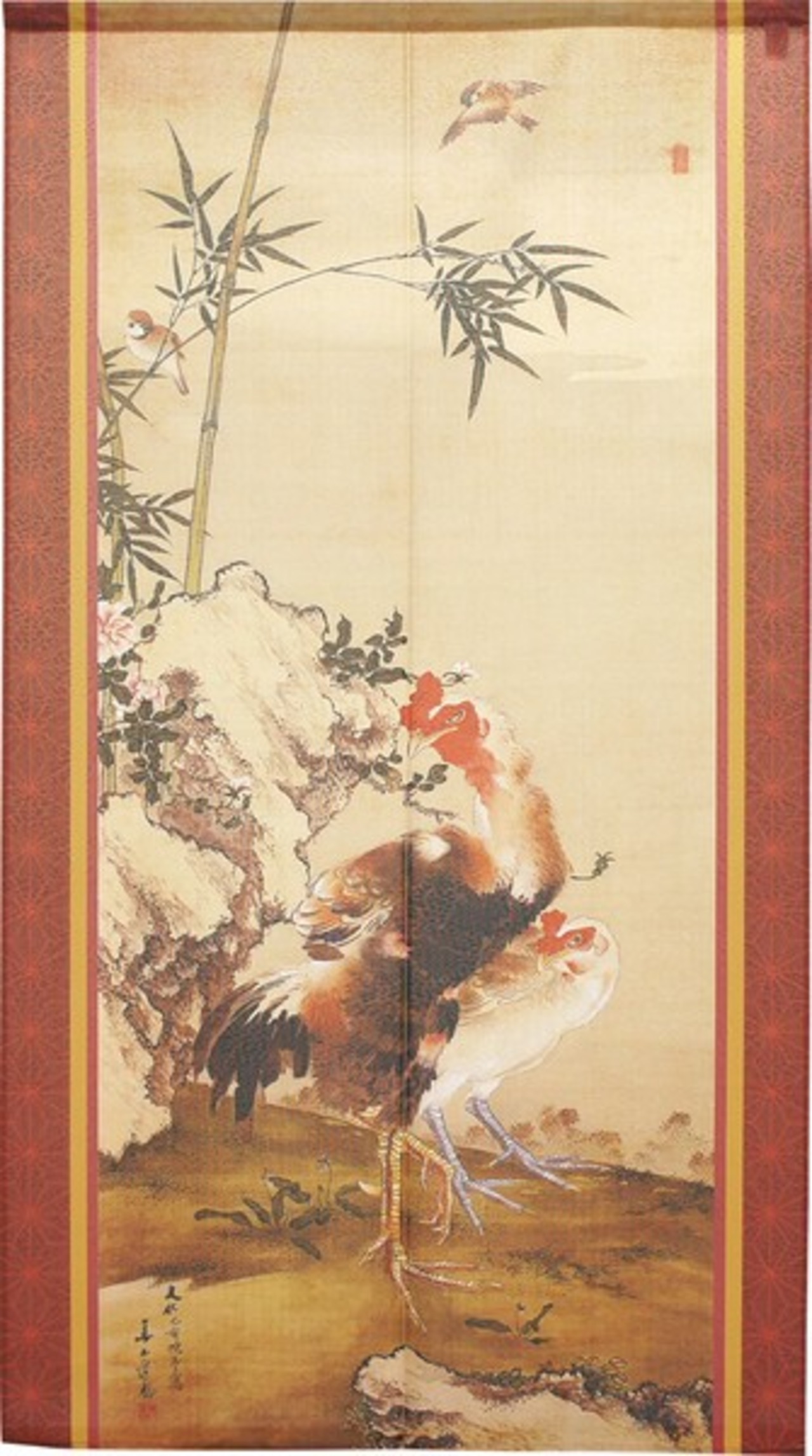 ★のれん「渡辺崋山_竹鶏小禽図 01」 約幅 85cm × 丈 90cm 1点