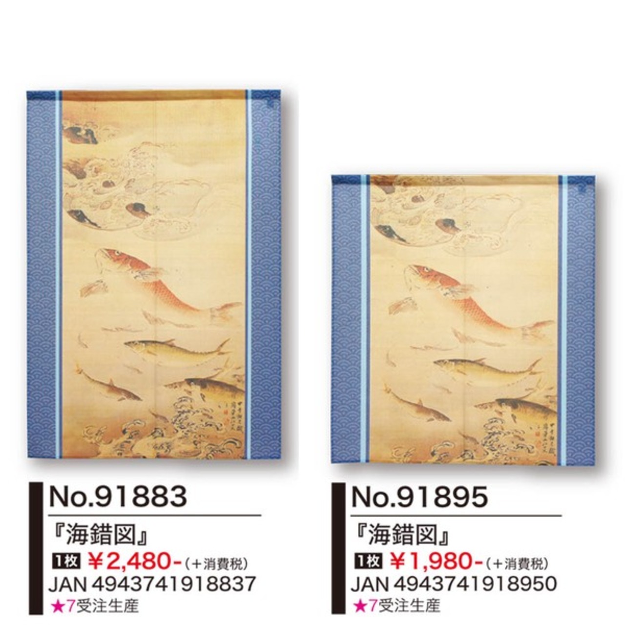 ☆のれん「渡辺崋山_海錯図」 約幅 85cm × 丈 150cm 1点
